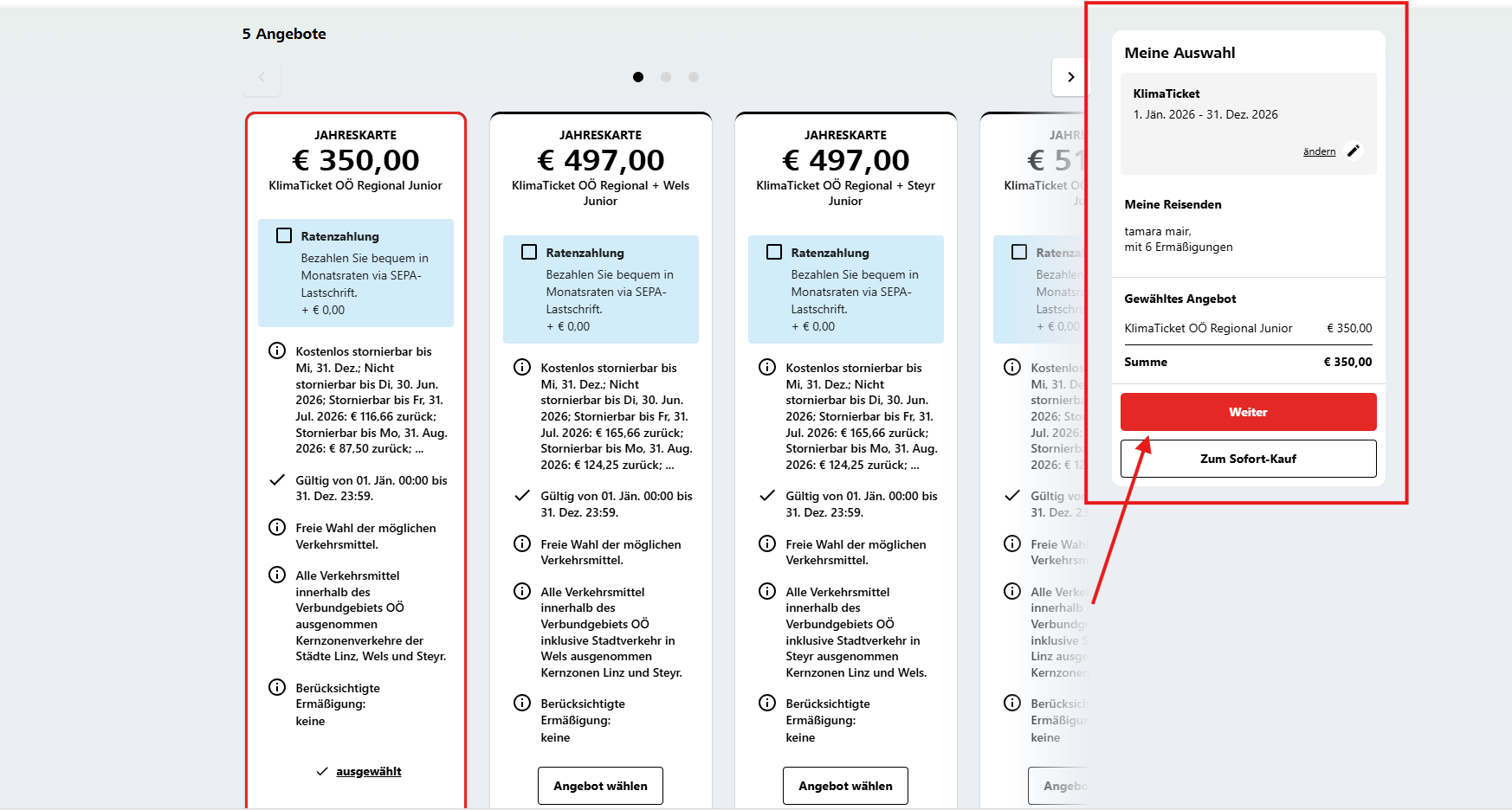 Achtung: Wenn Ratenzahlung gewünscht ist, muss das hier auf der Angebotsseite bereits ausgewählt werden!