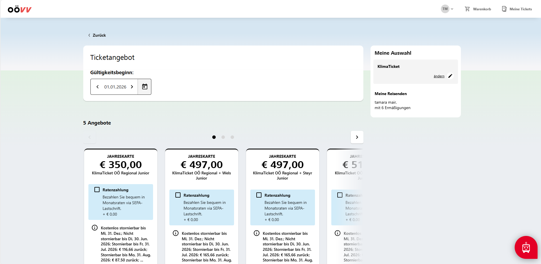 Sie können alle Ticketkategorien des KlimaTickets OÖ rasch und bequem im OÖVV Ticketshop oder persönlich im OÖVV Kundencenter kaufen. Dazu stehen Ihnen folgende Zahlungsarten zur Verfügung: